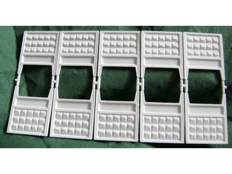 Betonplatten, wie sie in der ehemaligen DDR sehr oft zu finden waren. Diese können als Wand zusammenhängend aufgestellt werden, sind aber auch als seltendes Ladegut prima geeignet. Eine Betonplatte haben im Original eine Abmessung von 2,50 m Breite, 2,30 m Höhe und 17 cm Stärke. Damit ergibt sich für die 10 im Bausatz enthaltenen Platten eine Wandlänge von ca. 11,5 cm.