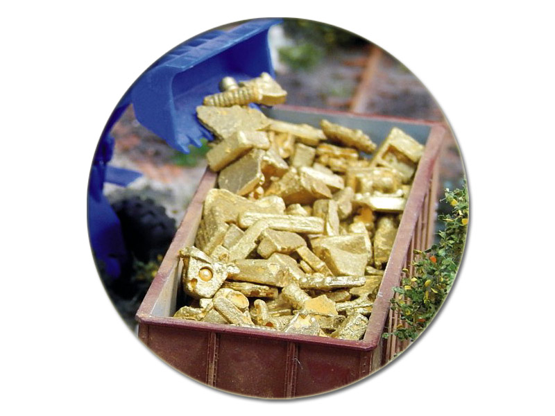 Auch die Miniatur-Industrie produziert Metall-Abfälle: Stanzreste, Platten, Träger, alte Regale, Metallteile...