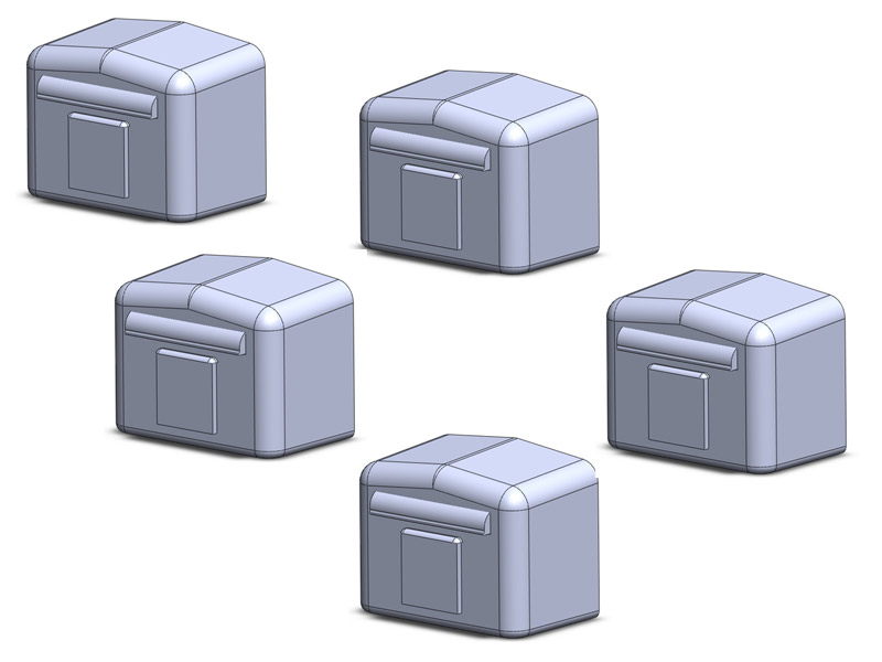 Briefkasten Deutsche Post, 5 Stück, Spur H0, 1:87 für Modelleisenbahn, Modellbau, Diorama