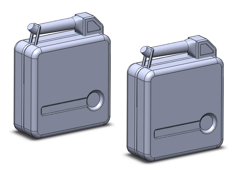20 Liter Reservekanister aus den 70er-Jahren der Herstellerfirma DILO. Nachbildung anhand von Vorbildfotos samt im Original ausklappbaren Einfülltrichter und Stutzen. Wurde vermutlich unter anderem häufig als einfach zu transportierender Reservekanister für den VW Käfer der ersten Generationen verwendet.