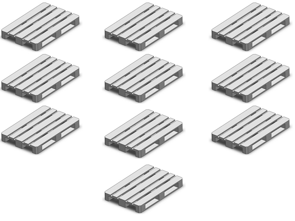 Maßstäbliche Nachbildung der Europoolpalette (auch Europalette genannt).