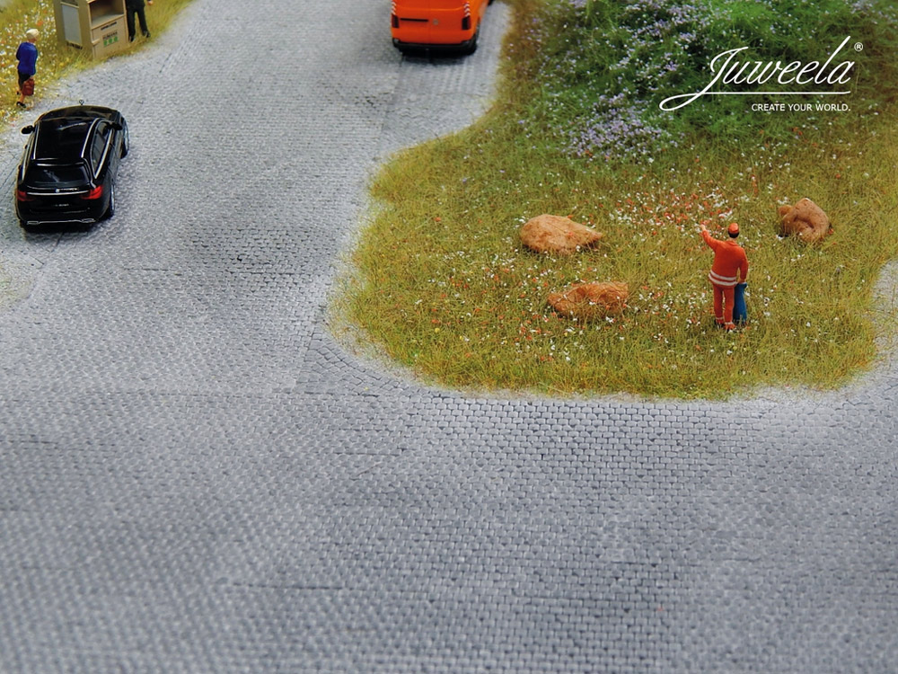 FLEXYWAY Kopfsteinpflaster Altstadt Kopfsteinplatz 1x klein, Spur H0, 1:87 für Modelleisenbahn, Modellbau, Diorama