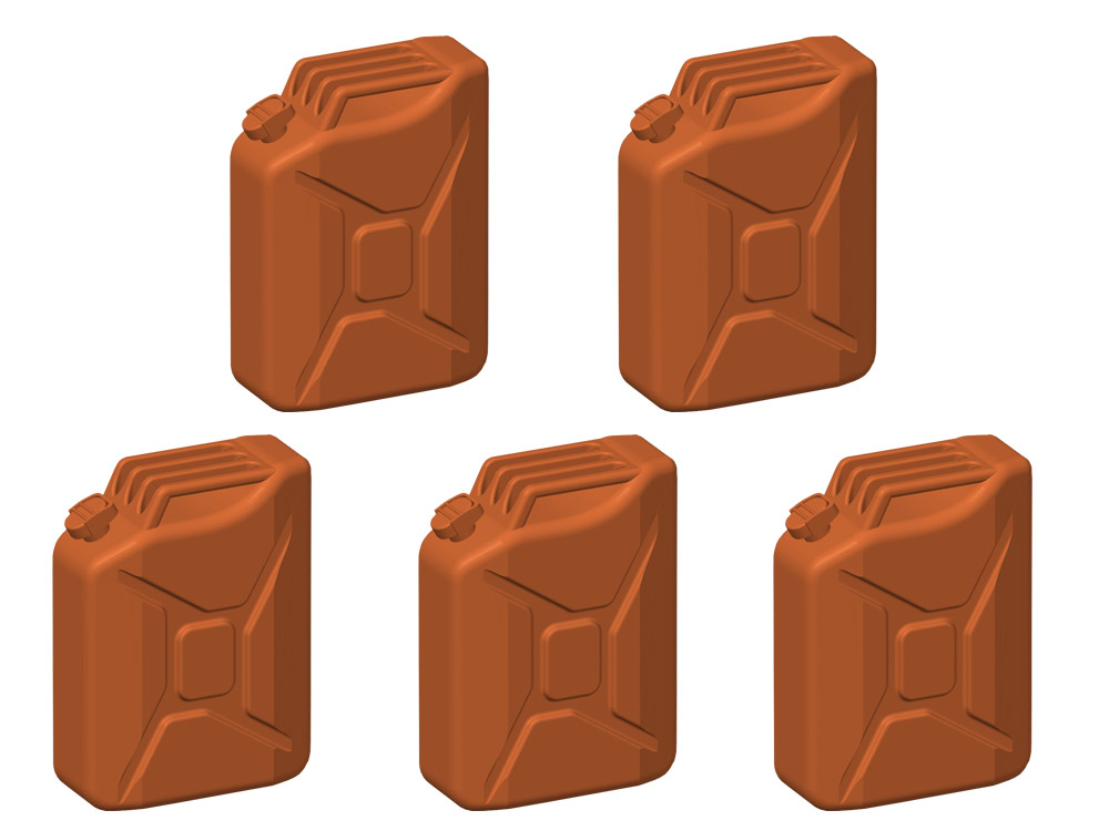 Kraftstoffbehälter Benzinkanister 20 Liter, 5 Stück, Spur H0, 1:87 für Modelleisenbahn, Modellbau, Diorama