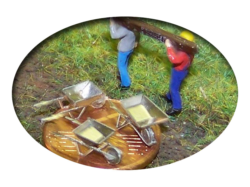 Schubkarren, Bausatz für 3 Stück, Spur H0, 1:87 für Modelleisenbahn, Modellbau, Diorama
