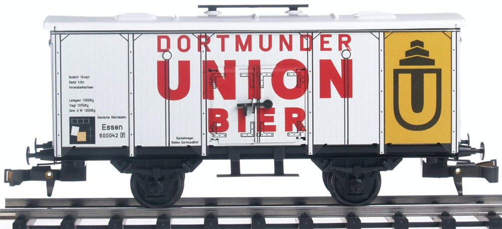 Bierwagen Kühlwagen DORTMUNDER UNION, Deutsche Reichsbahn DR, Spur 0, 1:45 für Modelleisenbahn, Modellbau, Diorama