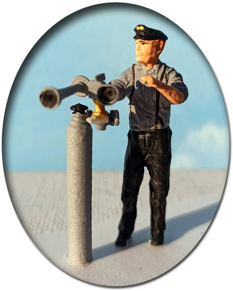 Streckenposten mit Fanfare, Modellbahnfigur handbemalt, Spur 0 (Null), 1:45 für Modelleisenbahn, Modellbau, Diorama