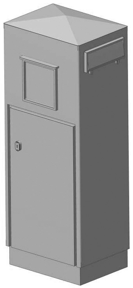 Sehr filigranes Modell mit angedeuteter Tür sowie Tafel, die die Leerungszeiten benennt.