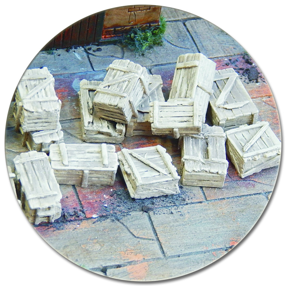 Alte Holzkisten gehören einfach zum üblichen urbanen Bild - im Vorbild ebenso wie im Modell auf Ihrer Modellbahnanlage, Segmenten, Modulen oder auf dem Diorama.
