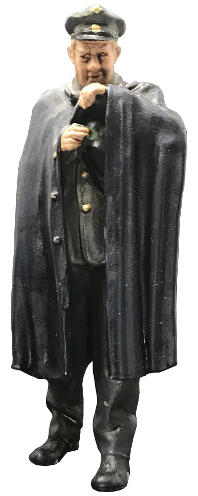 Post Schnupfen im Regencape, Modellbahnfigur handbemalt, Spur 0 (Null), 1:45 für Modelleisenbahn, Modellbau, Diorama
