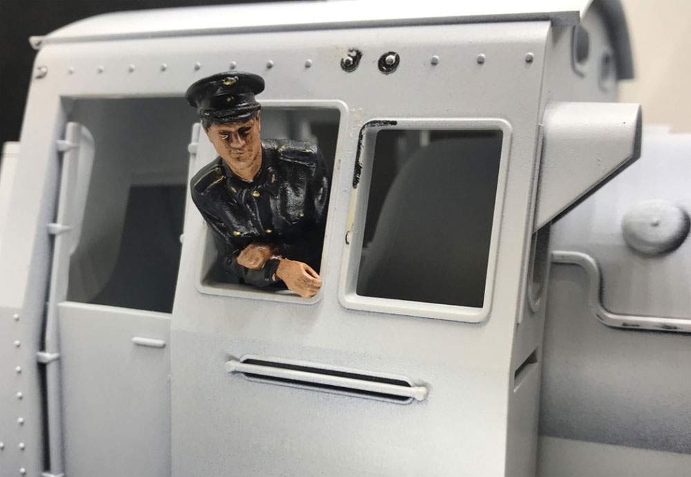Lokführer 1 stehend DR, Modellbahnfigur handbemalt, Spur 0 (Null), 1:45