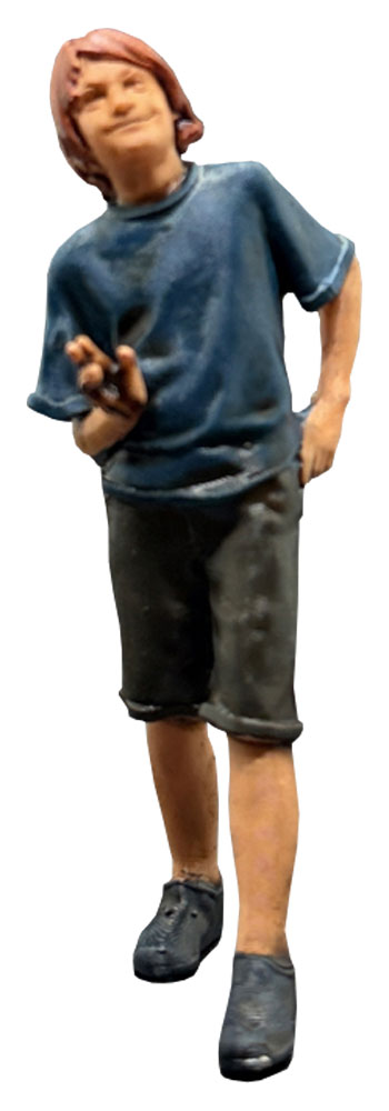 Kind 8 stehend, Modellbahnfigur handbemalt, Spur 0 (Null), 1:45 für Modelleisenbahn, Modellbau, Diorama