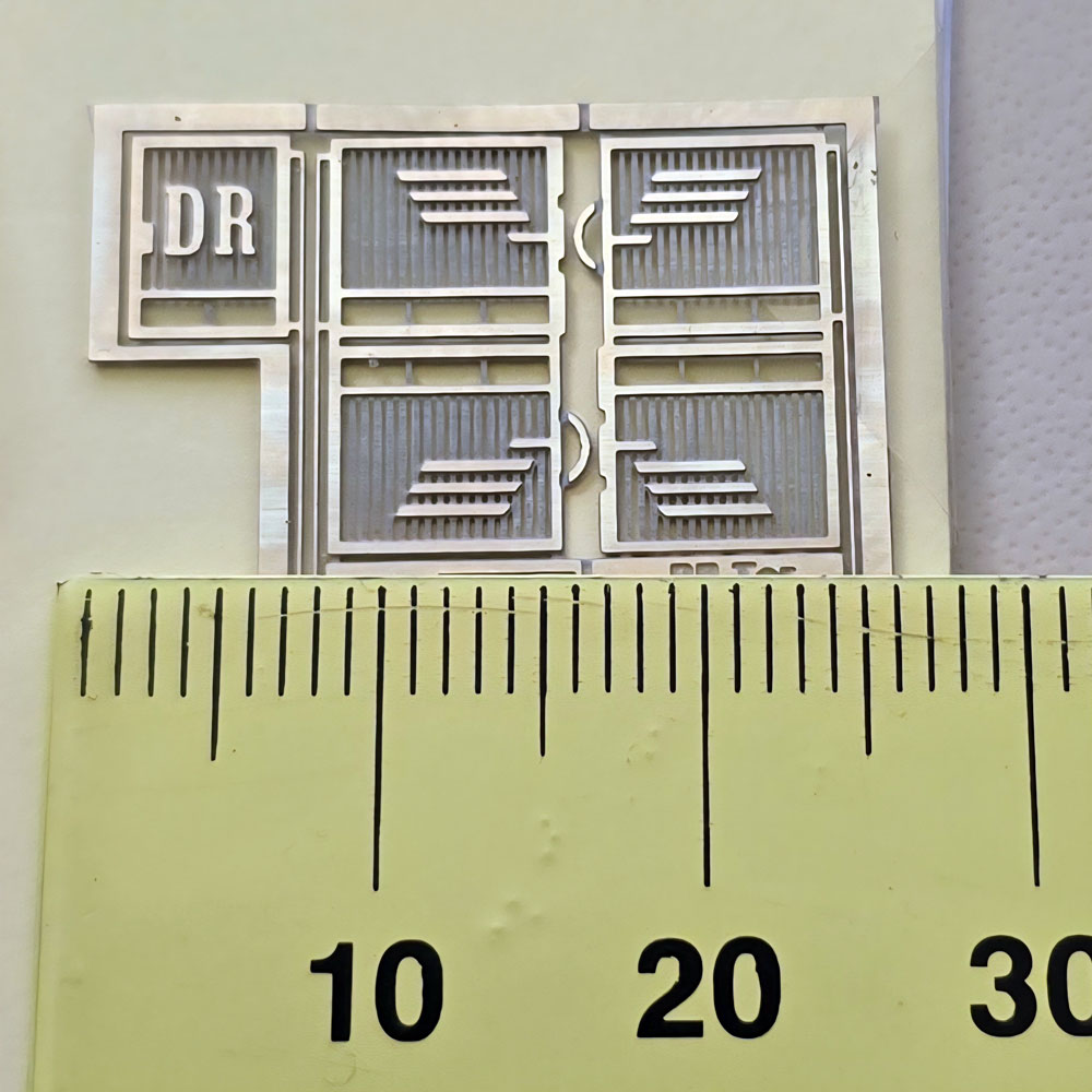 Abmessungen (BxTxH): Tor Flügelrad ca. 14 x 0,2 x 7 mm, Tor DR Schriftzug ca. 5 x 0,2 x 7 mm