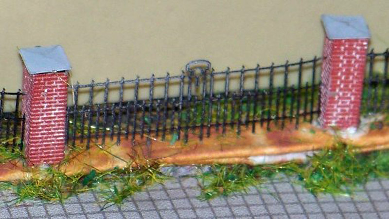 Der Bausatz enthält 11 Zaunfelder á 28 mm Länge, 12 Mauerpfeiler inkl. Deckplatten und 1 Prägewerkzeug . Gesamtlänge ca. 30 cm.