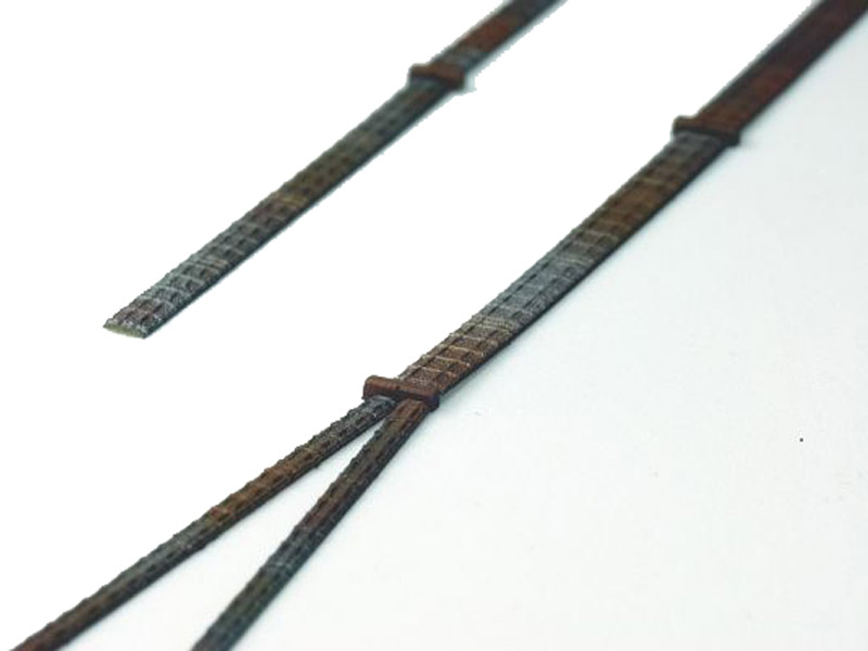 Jeweils zwei Kanäle pro Größe, also 10 Stück insgesamt. Maßstäbliche Umsetzung der Blechkanäle, wie sie früher bei mechanischen Stellwerken benötigt wurden. Das zweite Bild ist als Anschauung gedacht und zeigt die Kanäle gealtert.