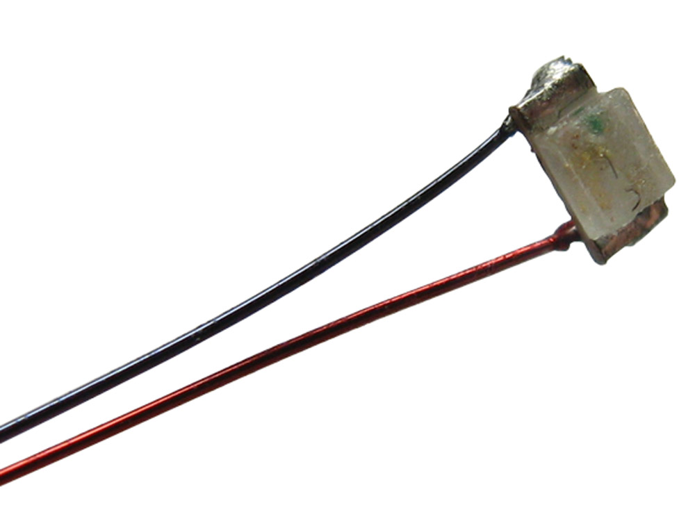 SMD LED 0603 mit Kupferlackdraht gelb, 2 Stück für Modelleisenbahn, Modellbau, Diorama